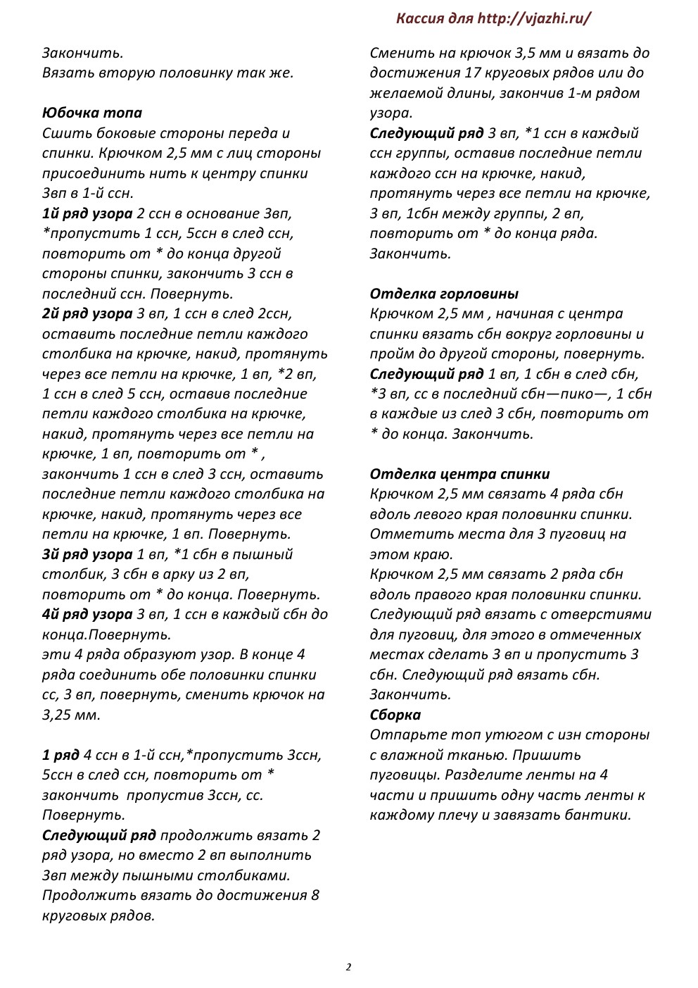 Перевод описания вязания для девочки костюма с английского языка.