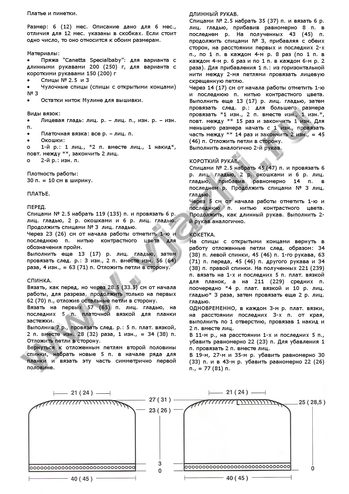 Размер: 6 (12) мес. Описание дано для 6 мес., отличия для 12 мес. указаны в скобках. Если стоит одно число, то оно относится к обоим размерам.