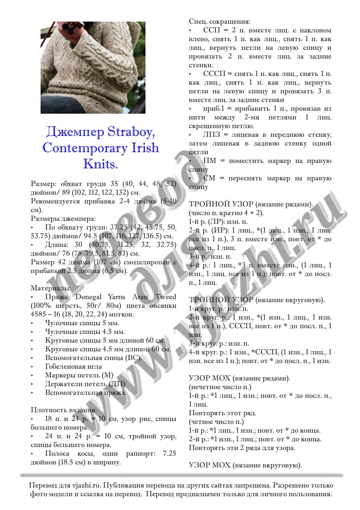 Перевод описания и схемы вязания для мужчин джемпера с английского языка.