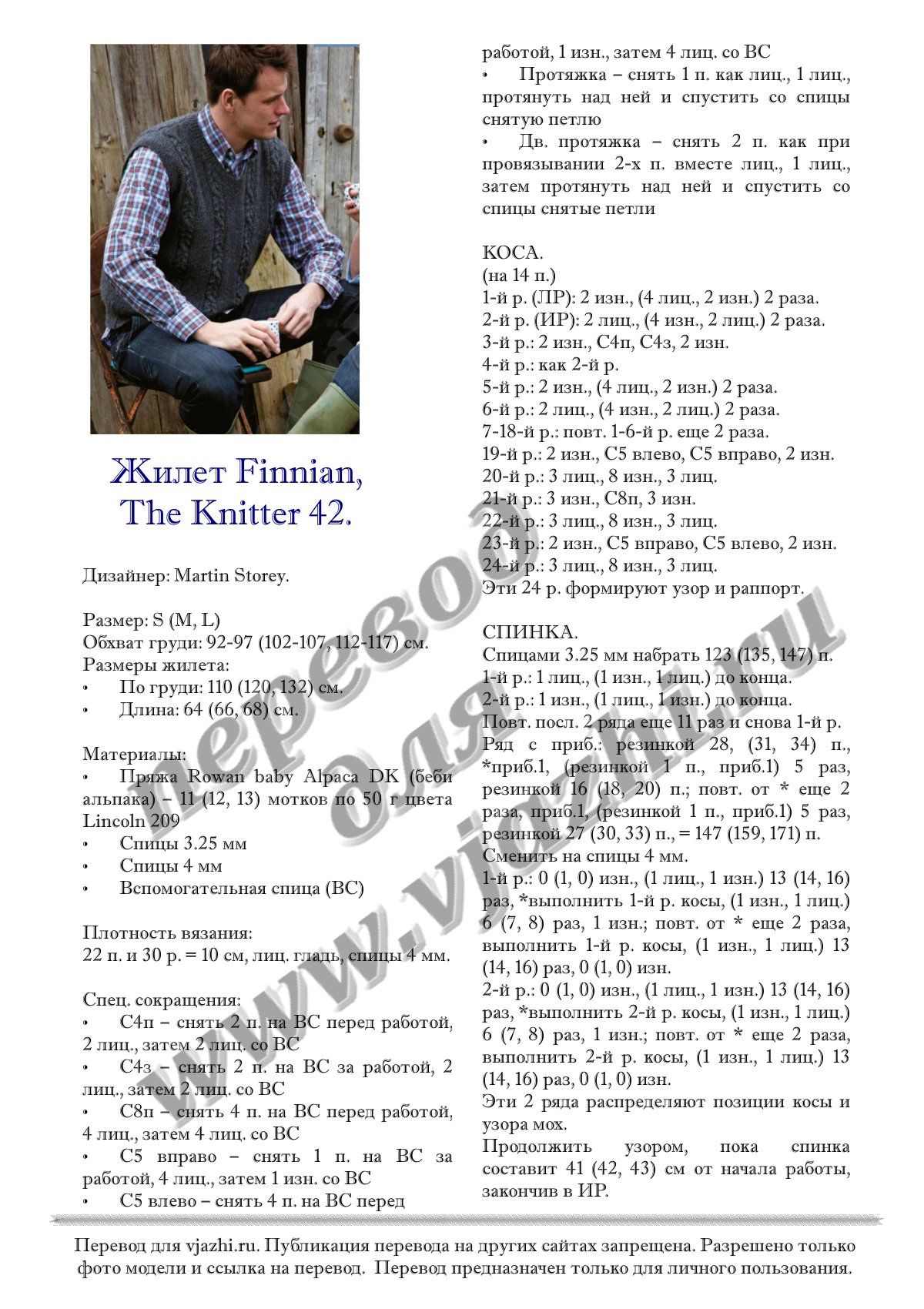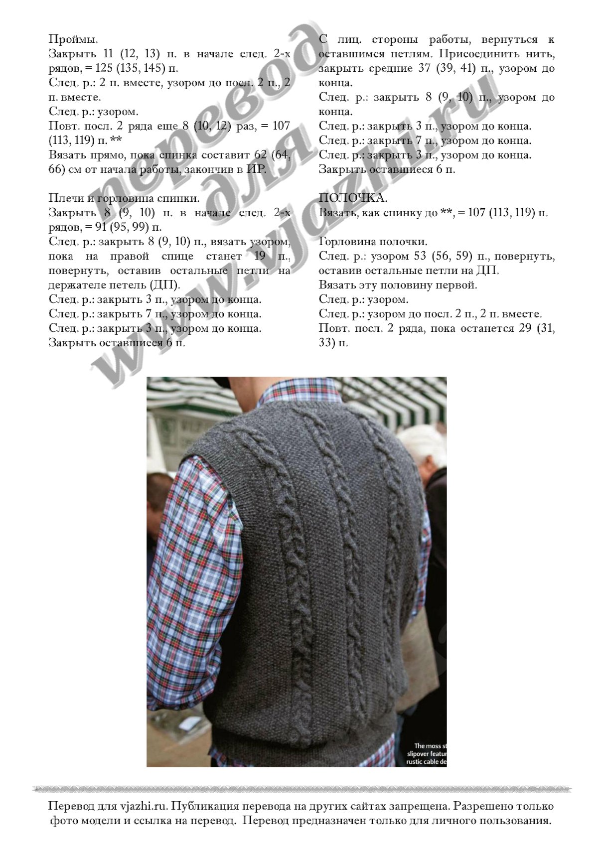 Перевод описания вязания для мужчин жилета с английского языка.