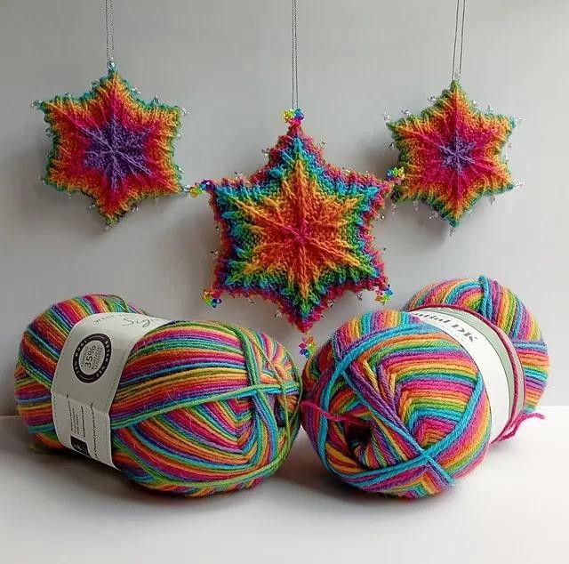 Этот дизайн — отличный способ утилизировать остатки пряжи, так как вы можете использовать любую пряжу с рекомендуемым размером спиц — более толстая пряжа и спицы дадут большее украшение, а более тонкие — меньшее.