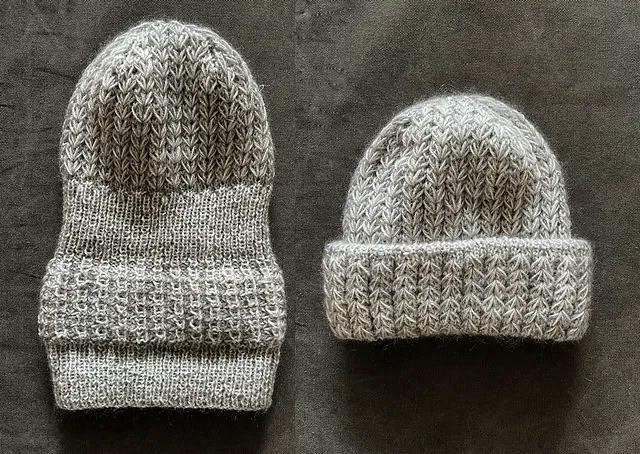 Хиона вяжется от резинки вверх и имеет двойной отворот для дополнительного тепла и структуры.