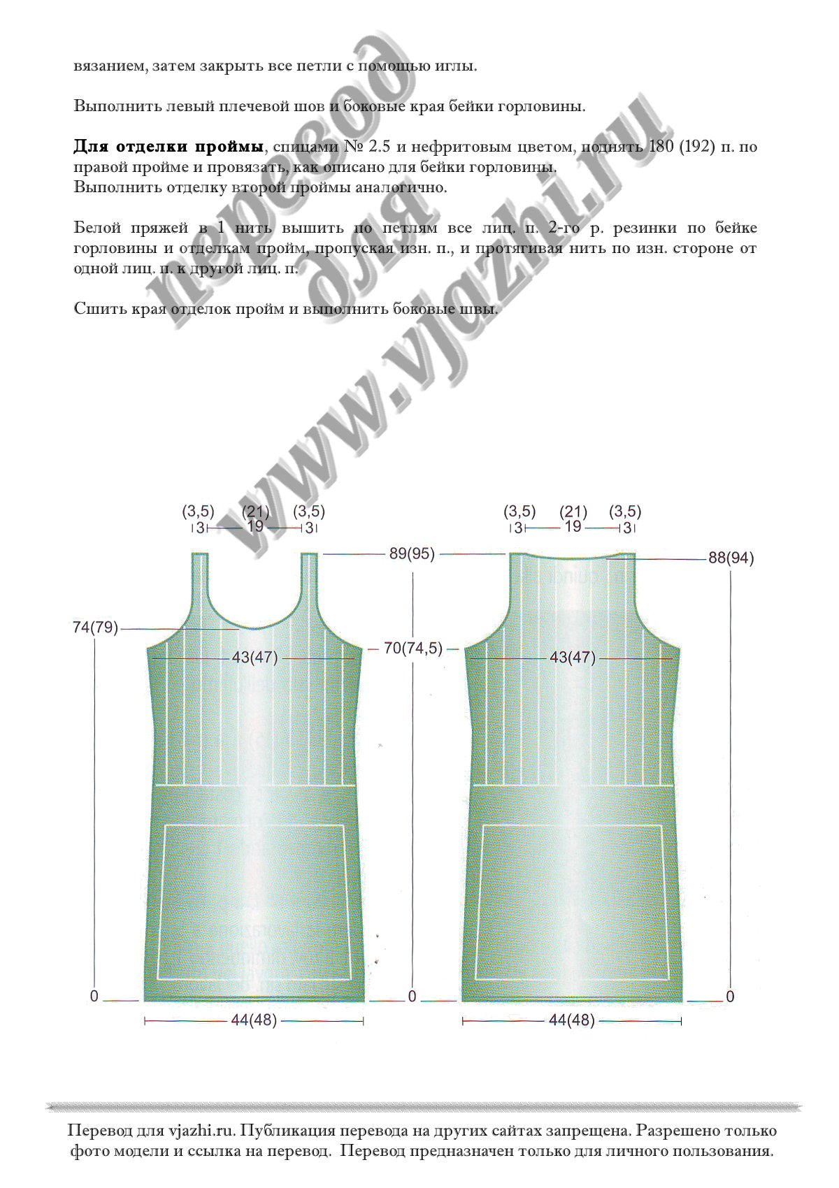 Вязание платья нефритового цвета с белыми полосками, Mani di Fata, апрель 2013.