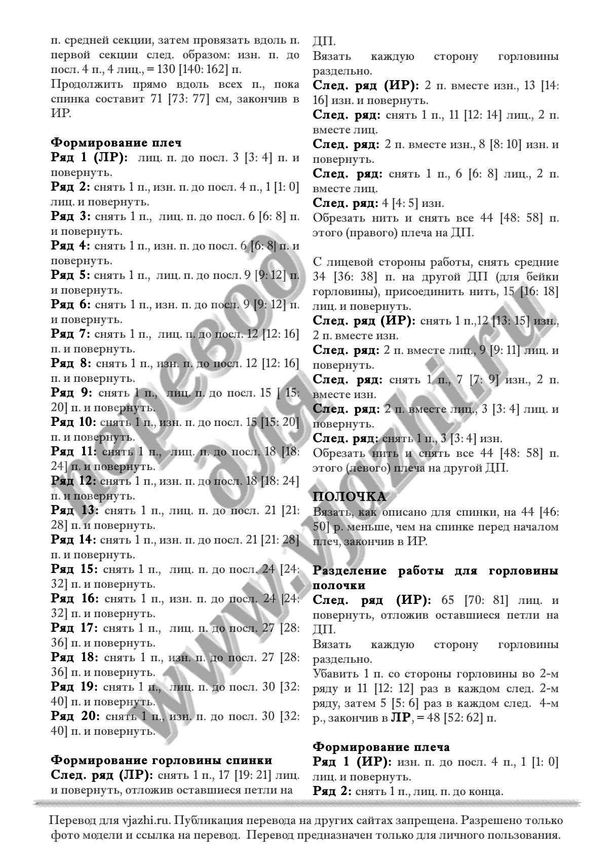 Размер: S-M (L, XL-XXL), для окружности груди 81-97 (102-107, 112-127) см.