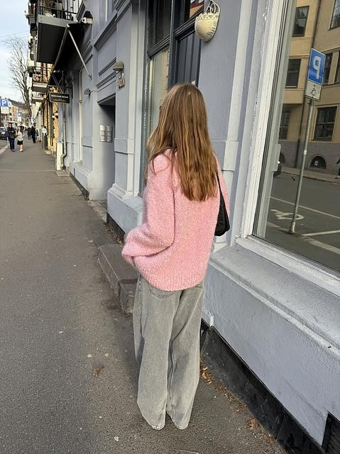 Ella – свитер оверсайз из пряжи букле, который вяжется сверху вниз с прибавлениями по линиям реглана. Конструкция регланом обеспечивает отличную посадку. Свитер выполнен в мужском стиле, с увеличенной длиной рукава.