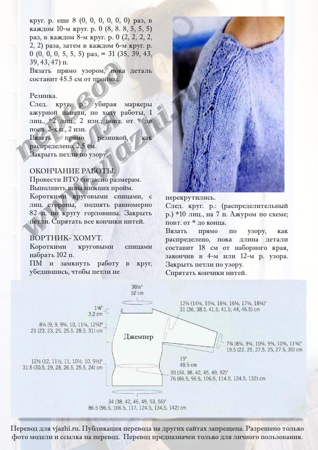 Размер джемпера по обхвату груди: 86.5 (96.5, 106.5, 117, 124.5, 134.5, 142) см. На фото показан размер 96.5 см.