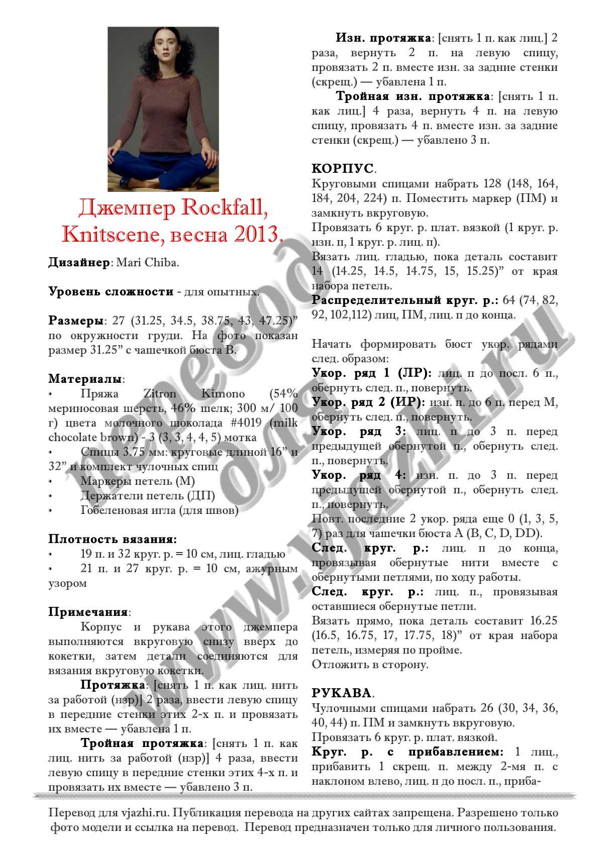 Вязание джемпера спицами Rockfall, Knitscene, весна 2013.