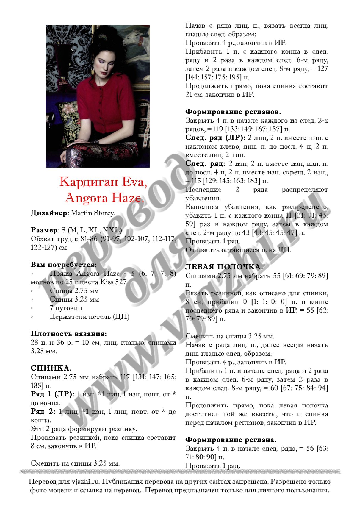 Перевод описания вязания кардигана с английского языка.