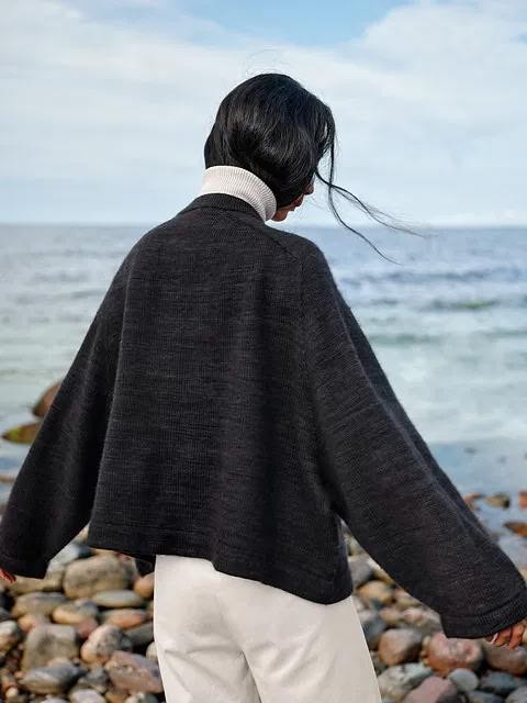 Жакет Midwinter (Середина зимы) вяжется без швов с конструкцией непрерывного плеча-погона. Жакет вяжется сверху вниз лицевой гладью. Низ изделия обработан подогнутым двойным краем.